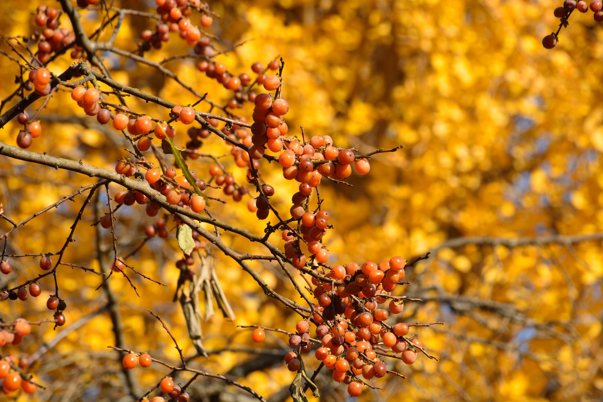 Spring flowers develop into fruit as the seasons progress. The fruit starts out yellow & turns orange to red & deeper purplish tones as it ages. The mature fruits typically measure between ½” & ¾”. The ancient Greeks dubbed it “God’s Fruit”, but a more useful descriptive nickname is The Date Plum, because the fruit tastes like a cross between a date & a plum. These Persimmons can be enjoyed as a juicy fresh fruit raw off the tree, dried, or made into jams & countless other delicious treats. The fruit contains lots of sugars and vitamins, & allowing the fruit to go through a frost or drying it brings out its natural sweetness. The Italian Persimmon is dioecious, but female trees will still produce seedless fruit without a male tree present.