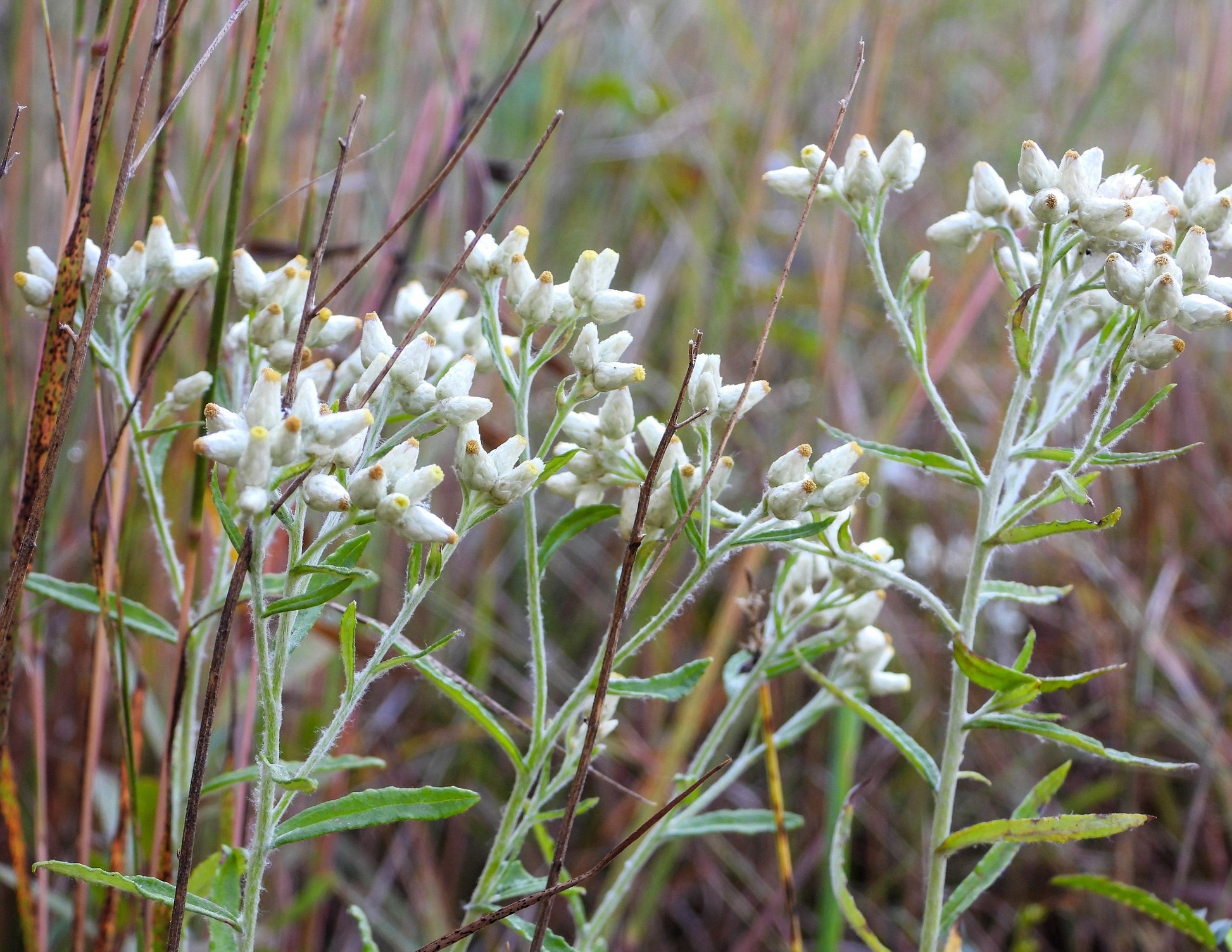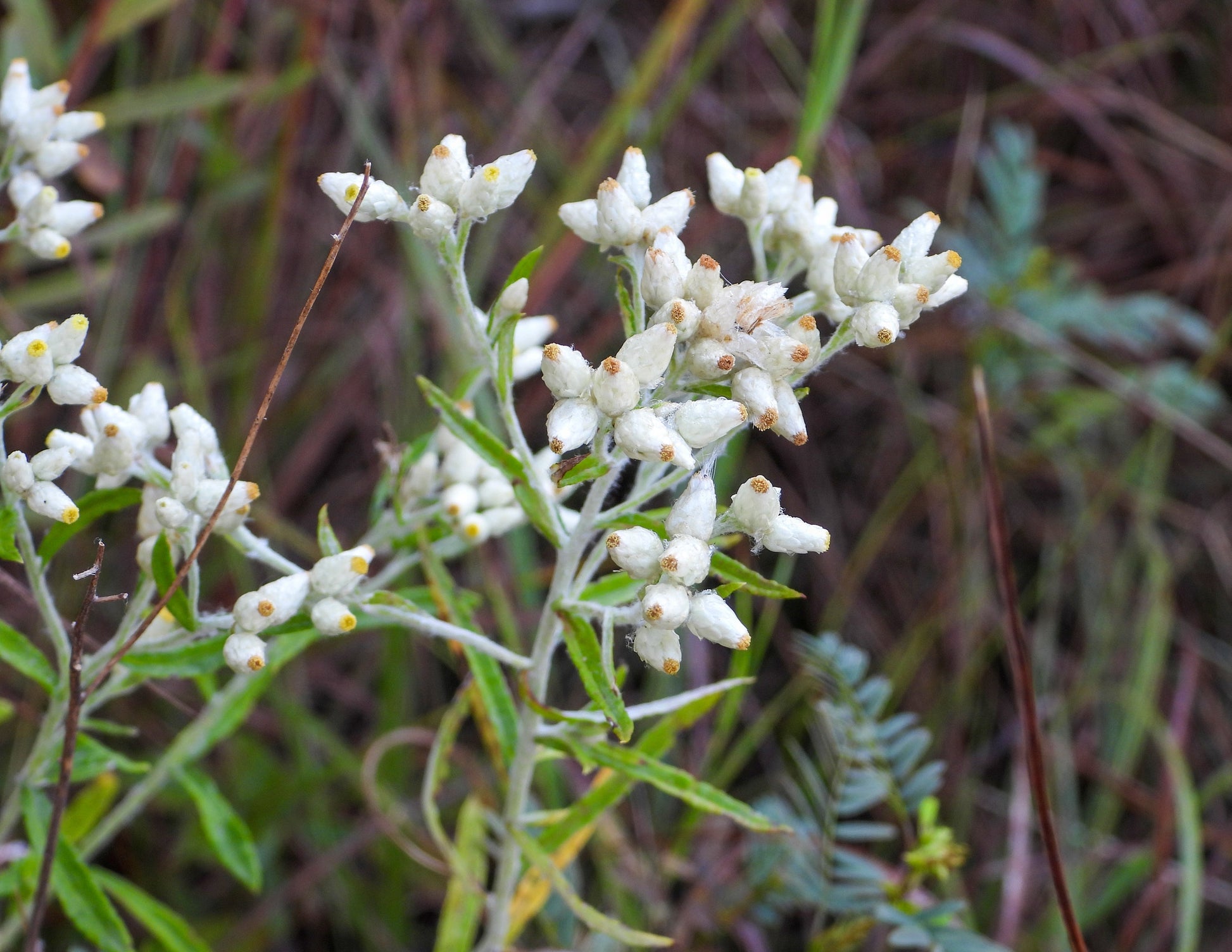 OTHER: Sweet Everlasting is an Eastern North American native herb, used medicinally by the Native American Indians. It is also a host plant for the beautiful Painted Lady Butterfly. It is able to tolerate dry or sandy soil. Summer into fall, clusters of flowers on white tipped stems bloom above the long thin leaves. The leaves smell like maple syrup when they crushed, & are great to use in potpourris. Being an ‘Everlasting’, it is also great for cut or dried flowers.
