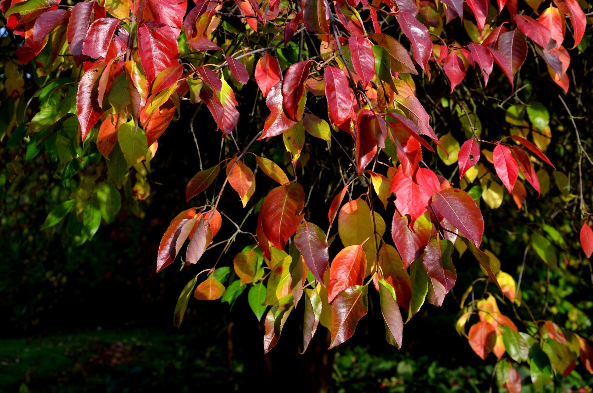 The plant’s large glossy 4” green leaves turn to lovely shades of yellow, orange, & deep reds in fall. Even after the leaves drop, the eye-pleasing berries still hang tight to the shrub, & some would argue that they develop their best flavor after having gone through a frost.