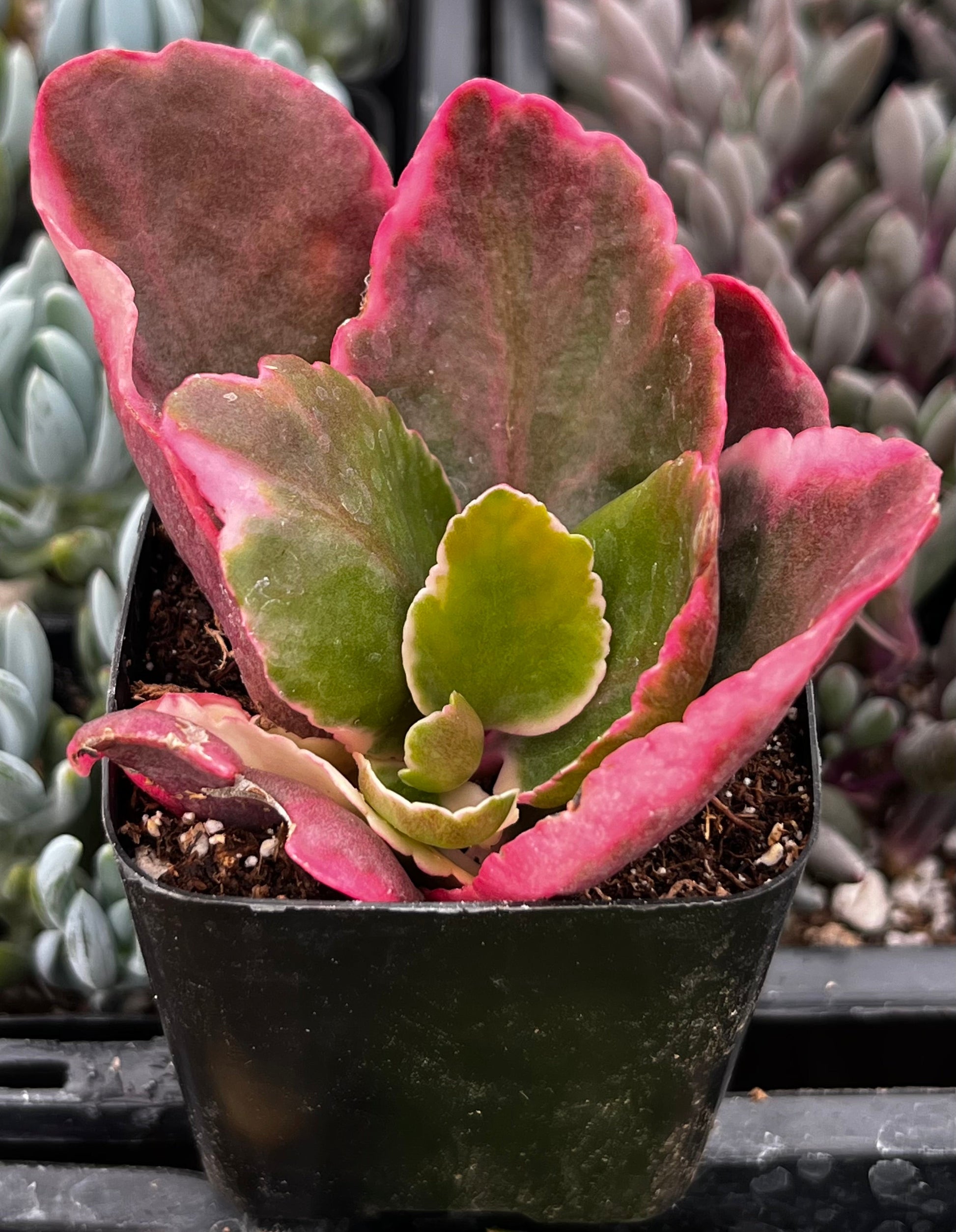 The Kalanchoe Blossfeldiana is a beloved succulent known for its clusters of bright, long-lasting flowers and thick, glossy green leaves. Blooming in shades of red, pink, orange, yellow, or white, this cheerful plant adds a burst of color to indoor and outdoor spaces. With its compact growth and low-maintenance nature, it’s a perfect choice for decorative pots, gifts, or as a seasonal accent in any succulent collection.