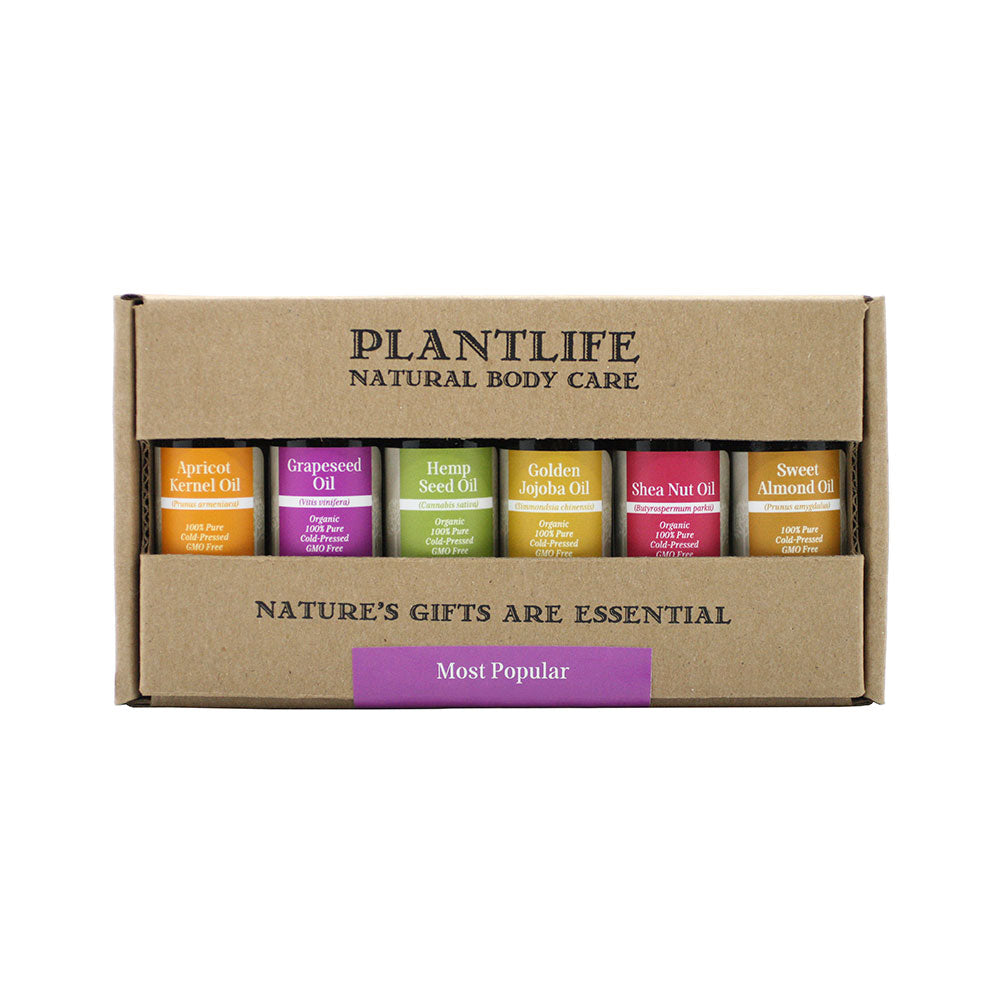 We’re often asked which carrier oils are the best to mix with essential oils… here’s our answer! It’s the “Top Six Carrier Oils for Use with Essential Oil Kit”. This kit includes: Grapeseed, Sweet Almond, Shea Nut Oil, Jojoba, Apricot and Hemp oil. Each oil offers a dynamic range of aromatherapy benefits and blends well with just about any essential oil making them a popular favorite with our customers and everyone here at Plantlife!
