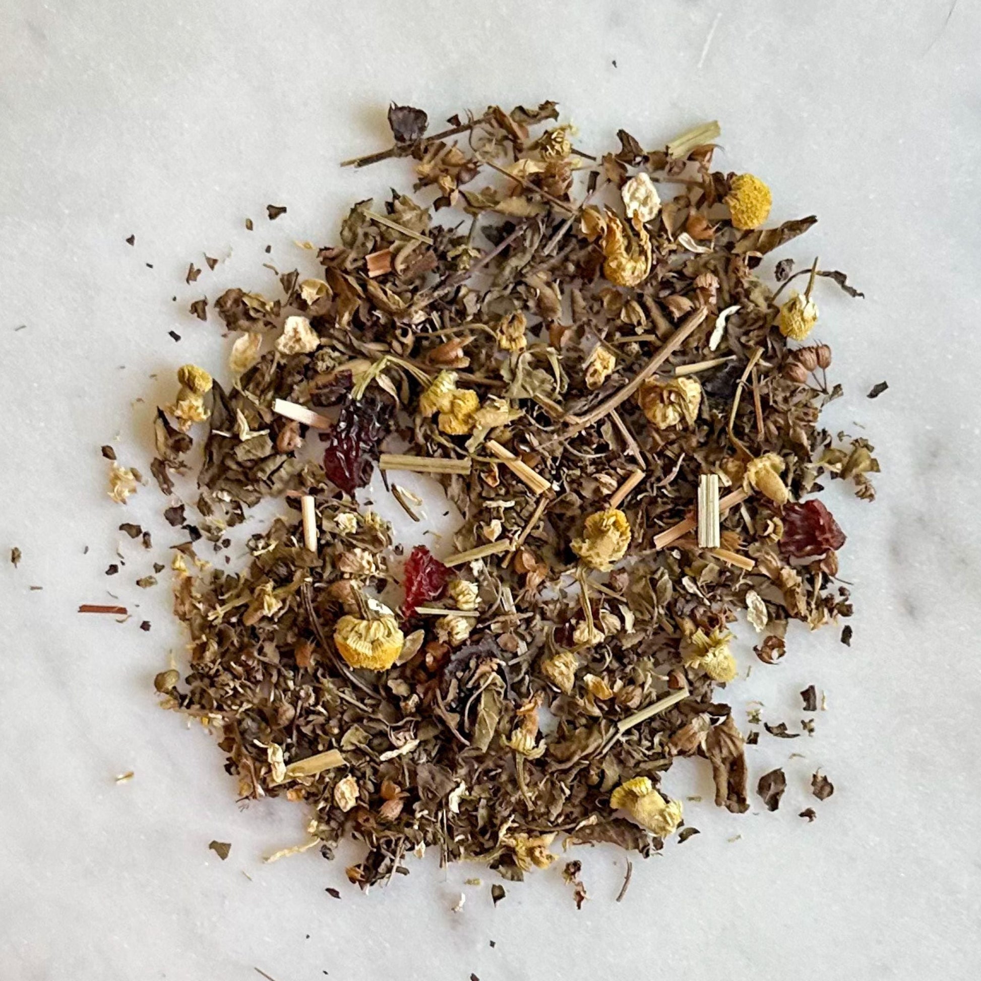 A mellow, relaxing organic herbal brew with a floral and citrus flavor profile.